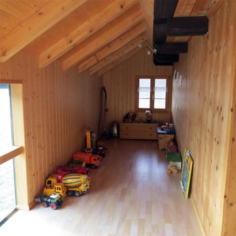 Unsere Ferienwohnumg befindet sich im esten Stock des Stöcklis,hier ist eine gemütliche 3 1/2 Zimmer Wohnung (75m)eingerichtet. Sie hat ein Schlafzimmer mit Doppelbett, ein Schlafzimmer mit zwei Etagenbetten, ein Kinderbett (auf Wunsch) sowie ein Wohnzimmer mit ausziehbarem Sofa und ein Sateliten TV. Eine grosse komplett eingerichtete Wohnküche mit Abwasch-und Kaffeemaschine, ein Badezimmer und eine Laube mit Eckbank und eine Spielecke sorgen für erholsame Ferien. Ein gemütlich ausgestatteter Sitzplatz mit Grillmöglichkeit (Mietbenützung) sowie ein Trapolin und Kinderschaukel lassen nichts mehr zu wünschen übrig.